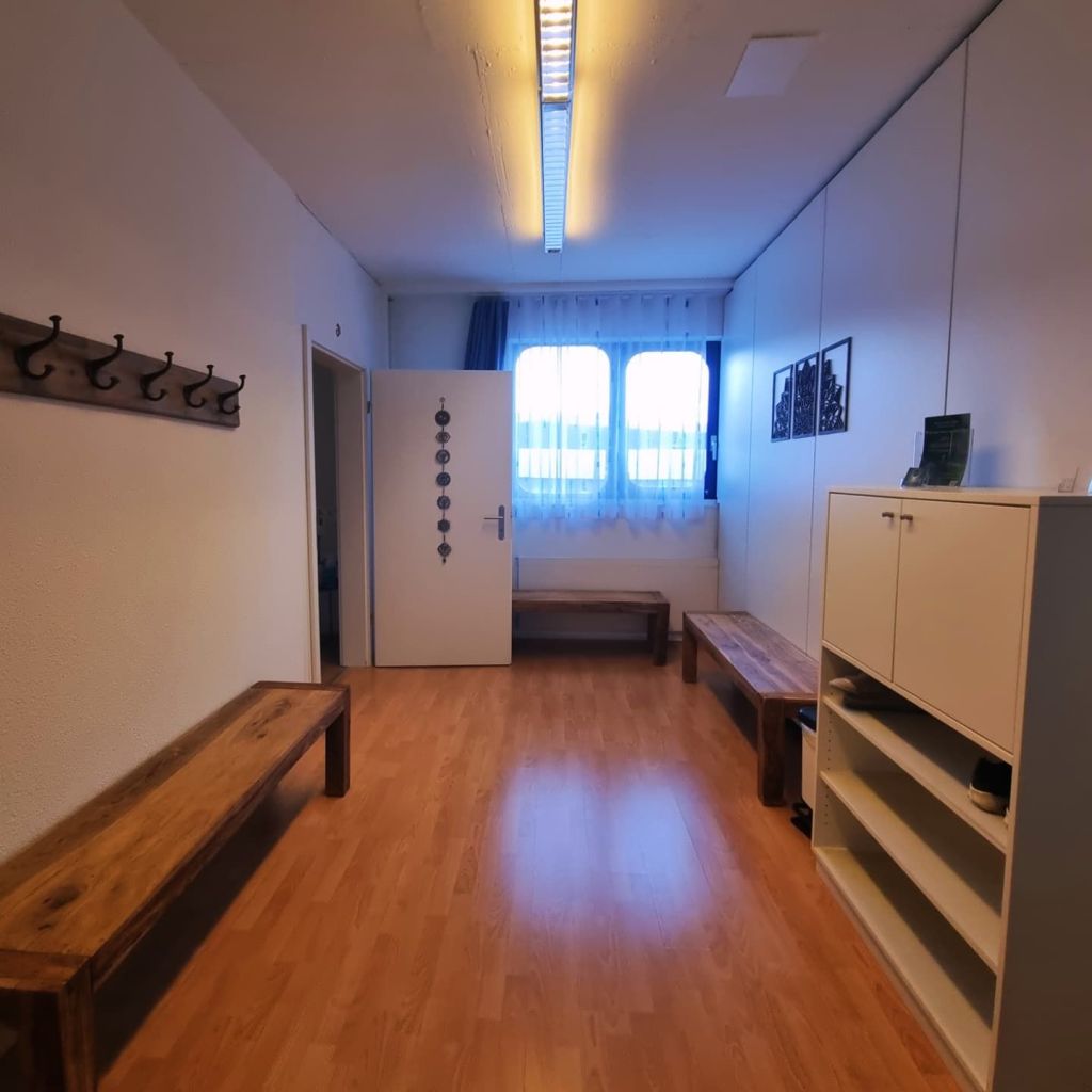 Mit 70m2 bietet dieser helle Raum mit grosser Fensterfront, ideale Bedingungen für ein breites Kursangebot – sei es Yoga, Pilates, Meditation, Mantra singen, Tanzkurse oder Qi Gong. Die Räumlichkeiten verfügen über Toiletten und eine geräumige Garderobe von 17m2. Zusätzlich steht dir eine Vielzahl an Yogahilfsmitteln zur Verfügung, wie zum Beispiel Matten, Blöcke, Decken, Meditationskissen und vieles mehr, um deine Kurse noch abwechslungsreicher gestalten zu können. Der Kursraum ist ideal gelegen, nur 3 Minuten vom Bahnhof Turgi entfernt, und somit super gut für Pendler erreichbar. Verpasse nicht die Chance, diesen grosszügigen, hellen und ideal gelegenen Raum für deine Unterricht zu nutzen!